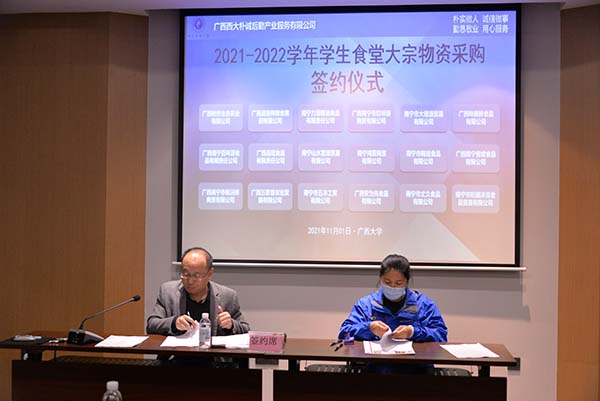 簽約儀式上,孔總首先介紹了我公司的有關(guān)情況,對供應(yīng)商的支持和幫助表達了感謝。孔總表示,雙方在接下來的合作中要相互配合,密切合作,共同在源頭上夯實食品安全防線。同時要求供應(yīng)商在配送物資過程中嚴格遵守廣西大學(xué)校園交通、校門管理等相關(guān)規(guī)定,與樸誠公司一道為廣西大學(xué)的教學(xué)科研提供一流的后勤服務(wù)保障。隨后,孔總一一與各供應(yīng)商簽訂了供貨合同書。