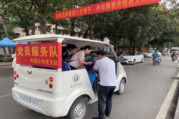 9月9日,公司黨支部開展“溫情迎新,黨員在行動”活動,為有需要的新生及家長們搬運行李,接送他們到達目的地。
