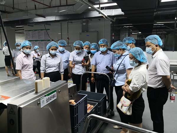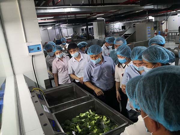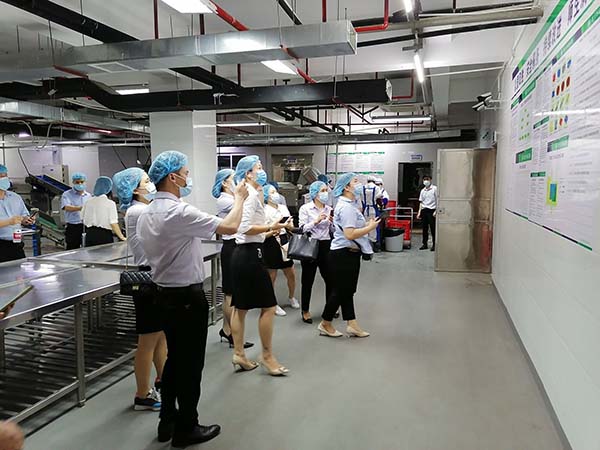 2021年5月31日下午,鮮而美餐飲公司一行17人到我公司參觀交流。在公司運(yùn)營監(jiān)管部嚴(yán)壯云主任的陪同下參觀了食品檢測室、凈菜加工中心、秀苑餐廳等,并詳細(xì)了解我公司無水廚房建設(shè)情況。