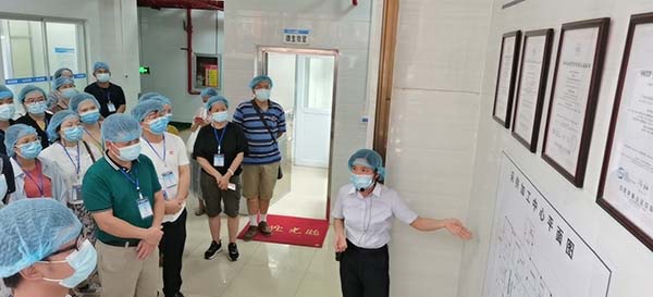 2021年6月29日下午,橫縣市場(chǎng)監(jiān)督管理局80人來我公司參觀交流,在運(yùn)營(yíng)監(jiān)管部主任嚴(yán)壯云的陪同下分別參觀了凈菜加工中心、食品檢測(cè)室、秀苑餐廳等,詳細(xì)了解了我公司無水廚房建設(shè)情況。