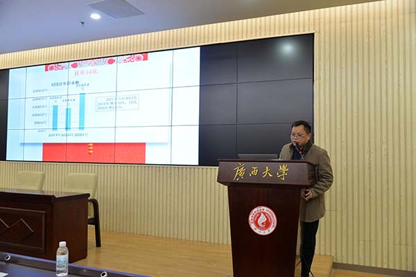 ??? 隨后,孔總用六個(gè)關(guān)鍵詞全面概括了公司2021年的工作,2021年在做好學(xué)校校內(nèi)餐飲、商貿(mào)等傳統(tǒng)服務(wù)的基礎(chǔ)上,公司拓展了5個(gè)校外業(yè)務(wù),接手了學(xué)校2個(gè)酒店,實(shí)現(xiàn)校園交通“1元乘車”并做好學(xué)校各個(gè)部門的交通服務(wù)工作,商貿(mào)服務(wù)事業(yè)部營業(yè)收入達(dá)到了3358萬,公司營業(yè)收入總額突破2個(gè)億的目標(biāo),榮獲了“廣西餐飲管理標(biāo)桿企業(yè)”、“2021年廣西團(tuán)餐品牌20強(qiáng)”等榮譽(yù)。