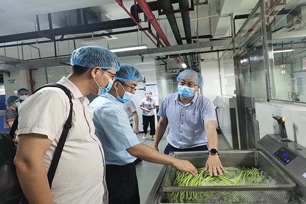 ? 會后,馮董一行參觀了我公司的凈菜加工中心、秀苑餐廳、東苑餐廳、老水塔咖啡廳、樸誠校園超市、匯學堂及薈萃樓酒店等。