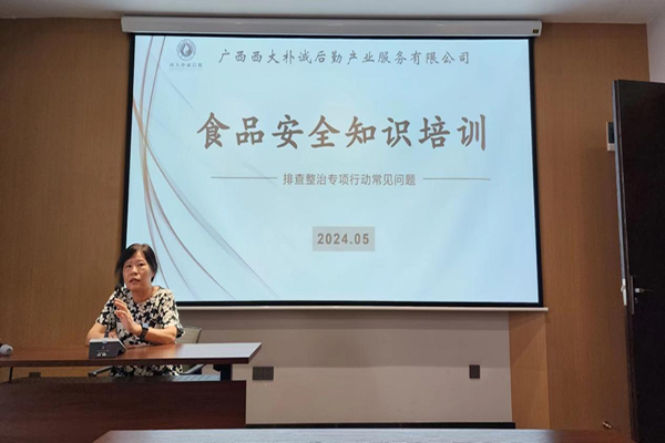 為推進廣西“校園食品安全排查整治專項行動”開展,提高食品安全責任意識,保障在校師生飲食安全,公司于5月17日下午在薈萃樓五樓明德廳舉辦食品安全知識內(nèi)部培訓會。公司分管副總經(jīng)理唐亞瓊、各餐廳及各部門負責人、食品安全員約40人參加了培訓。