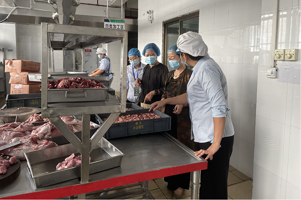 張彌帶隊(duì)檢查餐廳肉類加工情況(李麗莉攝)